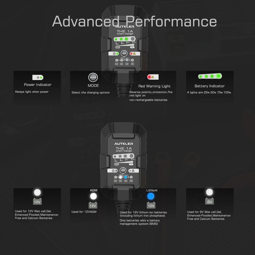 -Auto Memory, Automatically returns to last selected mode. Worry-free battery charger and save time.A fully automatic, hassle-free charger for year-round use.